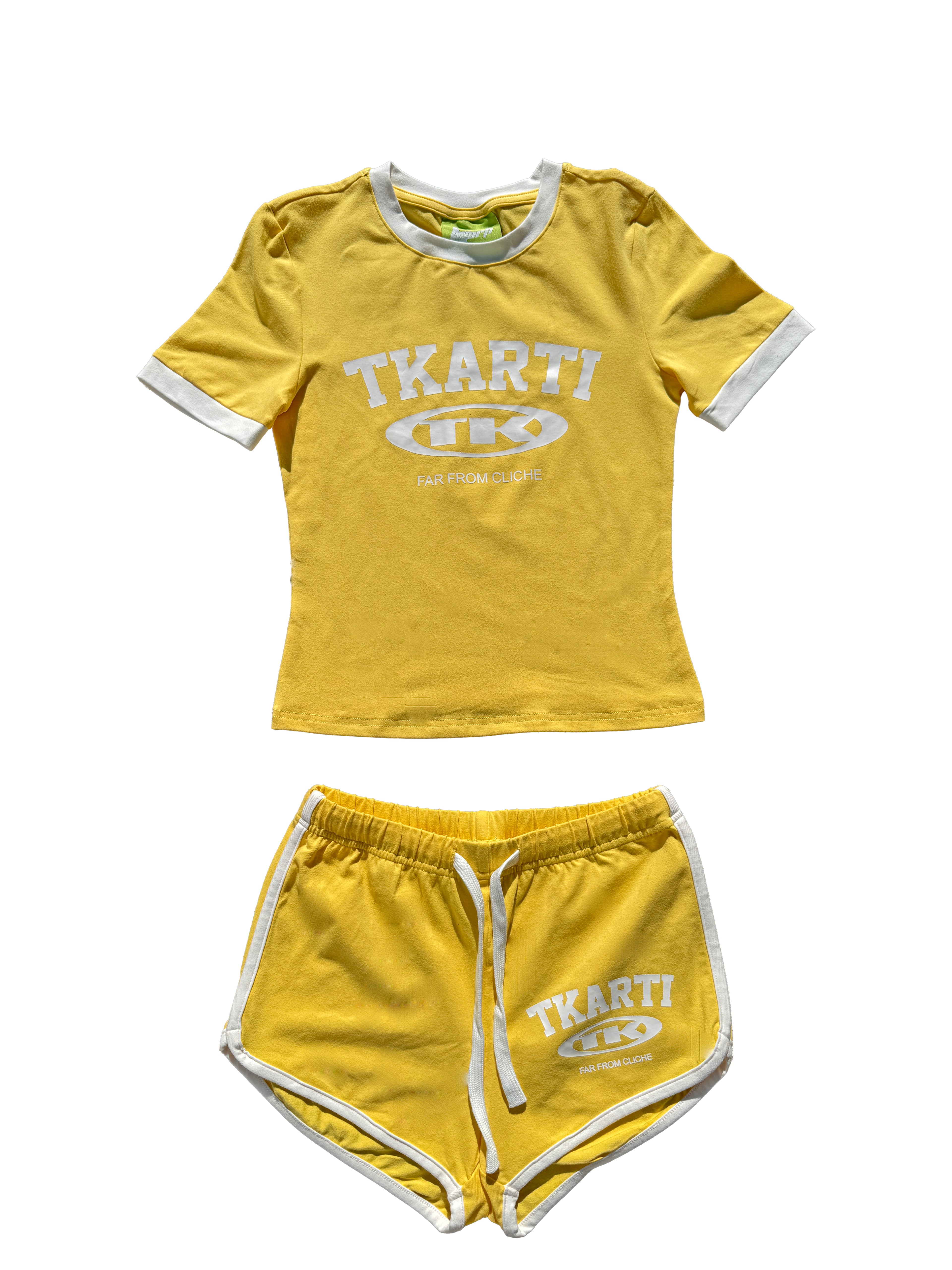 To get the full set, please add both the shirt AND the shorts to your cart before checking out.